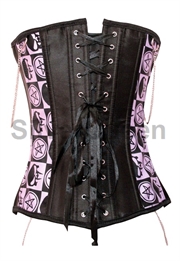 Corsagen er sort med lyserødt/lilla lyst mønster med stjerner og kranie hoveder.