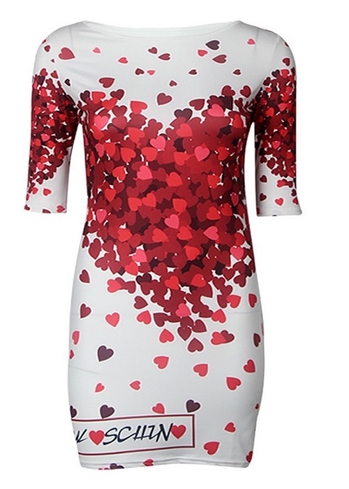 Skøn hvid kjole med masser af hjerter i blandet farver.