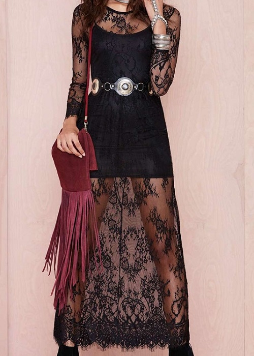 Kjolen er yderst med gennemsigtigt blonde stof med tråd strittende bund ved ærmerne samt bunden af kjolen.