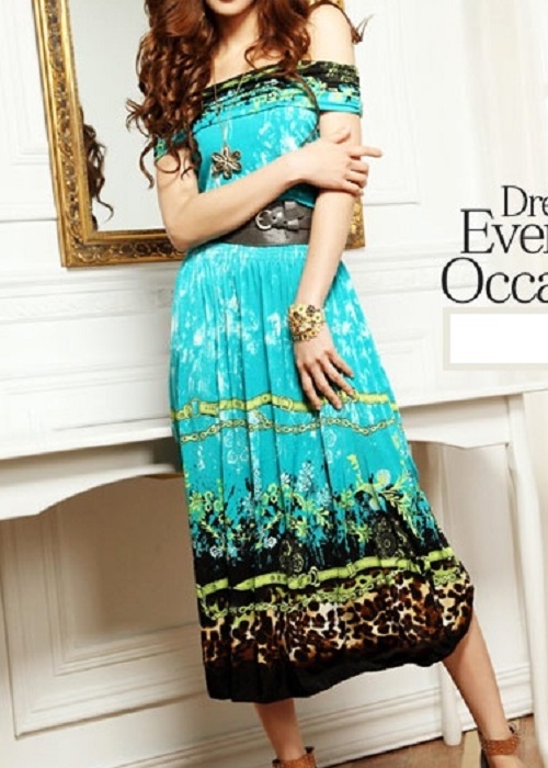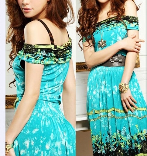 Skøn feminin kjole i flot farve sammensætnings mix af turkis.