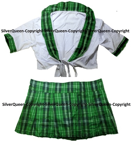 Binde top med ternet krave og ærme kanter. Det hvide stof er glat tyndt stræk stof.