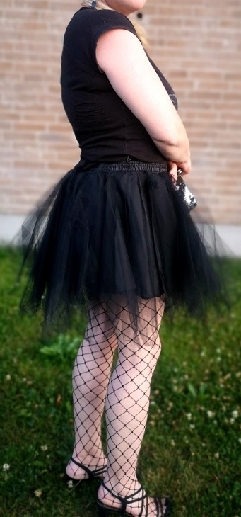 Nederdelen har glat sort skinnende inderstof, så man ikke er gennemsigtig og bred krep elastik lining øverst.